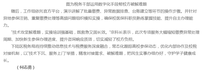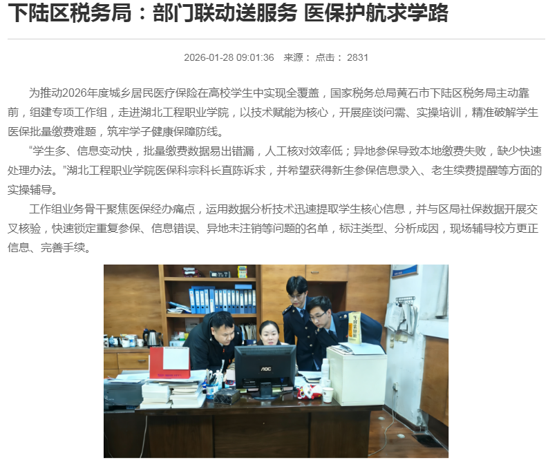 【楚天法治】下陆区税务局:部门联动送服务 医保护航求学路